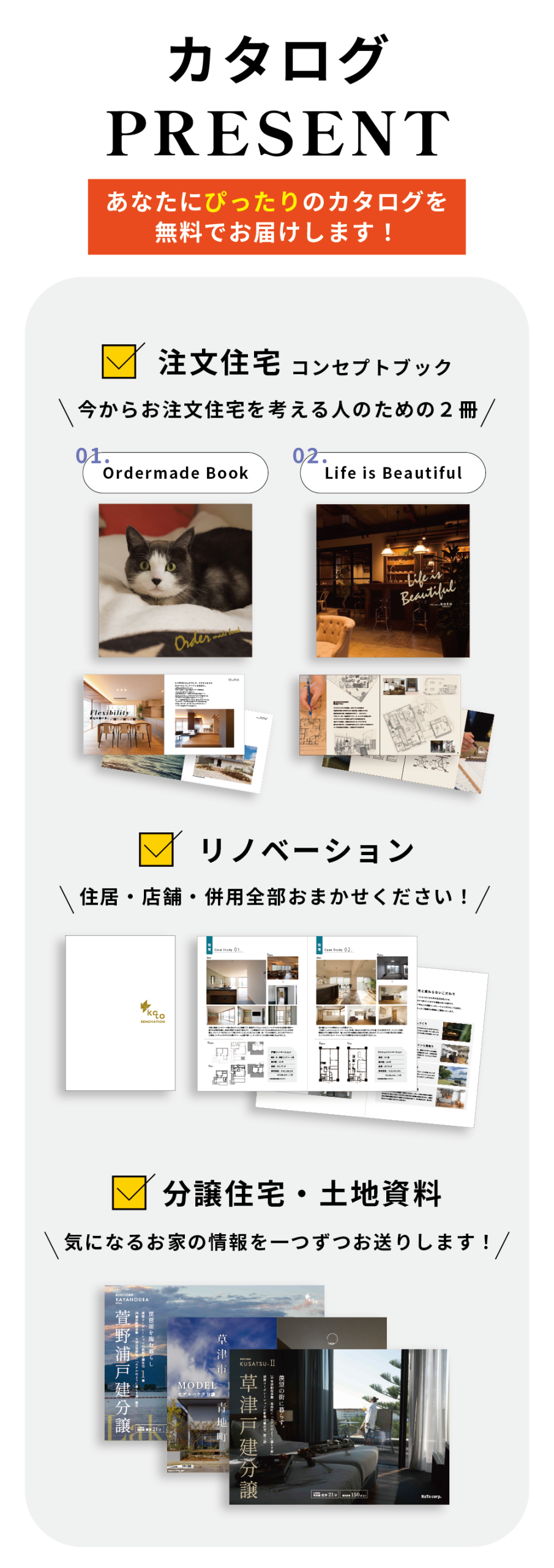 ホームページから資料をご請求いただいた方に、湖都コーポレーションの家づくりについて詳しく知っていただける、資料をプレゼントいたします。