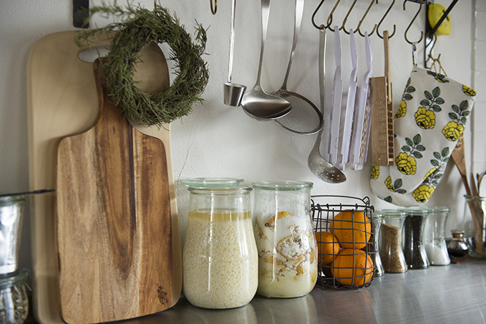 ご自身で漬けた塩麹や塩レモン、ラム酒に漬けたレーズンなどが並ぶ。