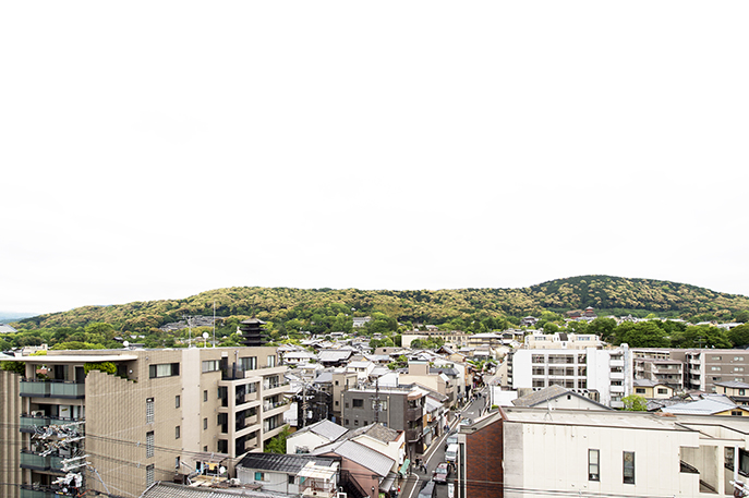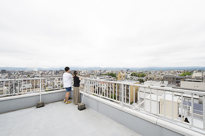 屋上からは京都の街並が一望でき、